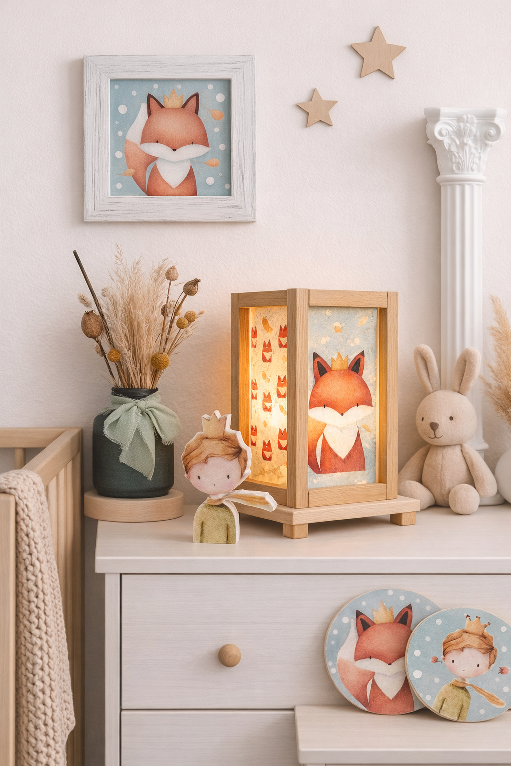 Ciò che rende davvero speciali le nostre lampade sono le illustrazioni uniche della nostra illustratrice. Ogni disegno racconta una storia, trasmette un'emozione e crea un legame con il tuo ambiente. Scegli l'illustrazione che risuona di più con la tua anima, che si tratti di natura, animali, o personaggi di una fiaba.