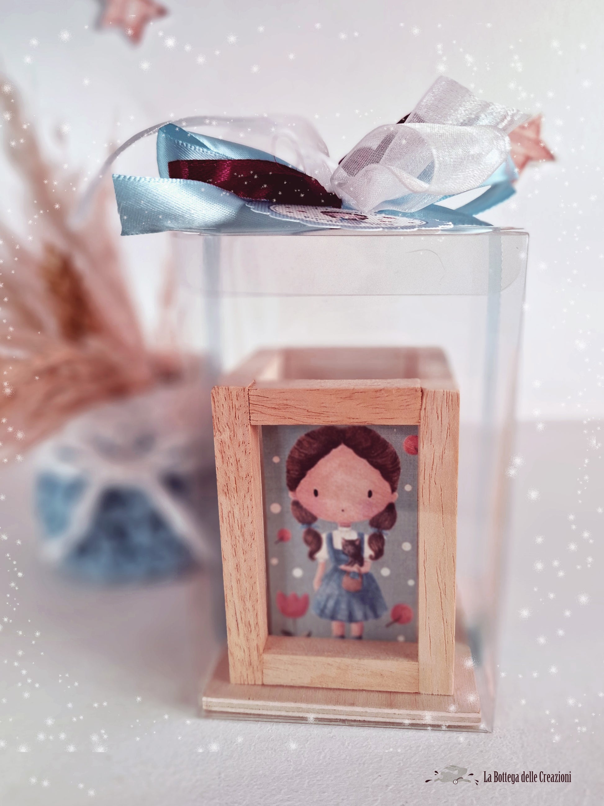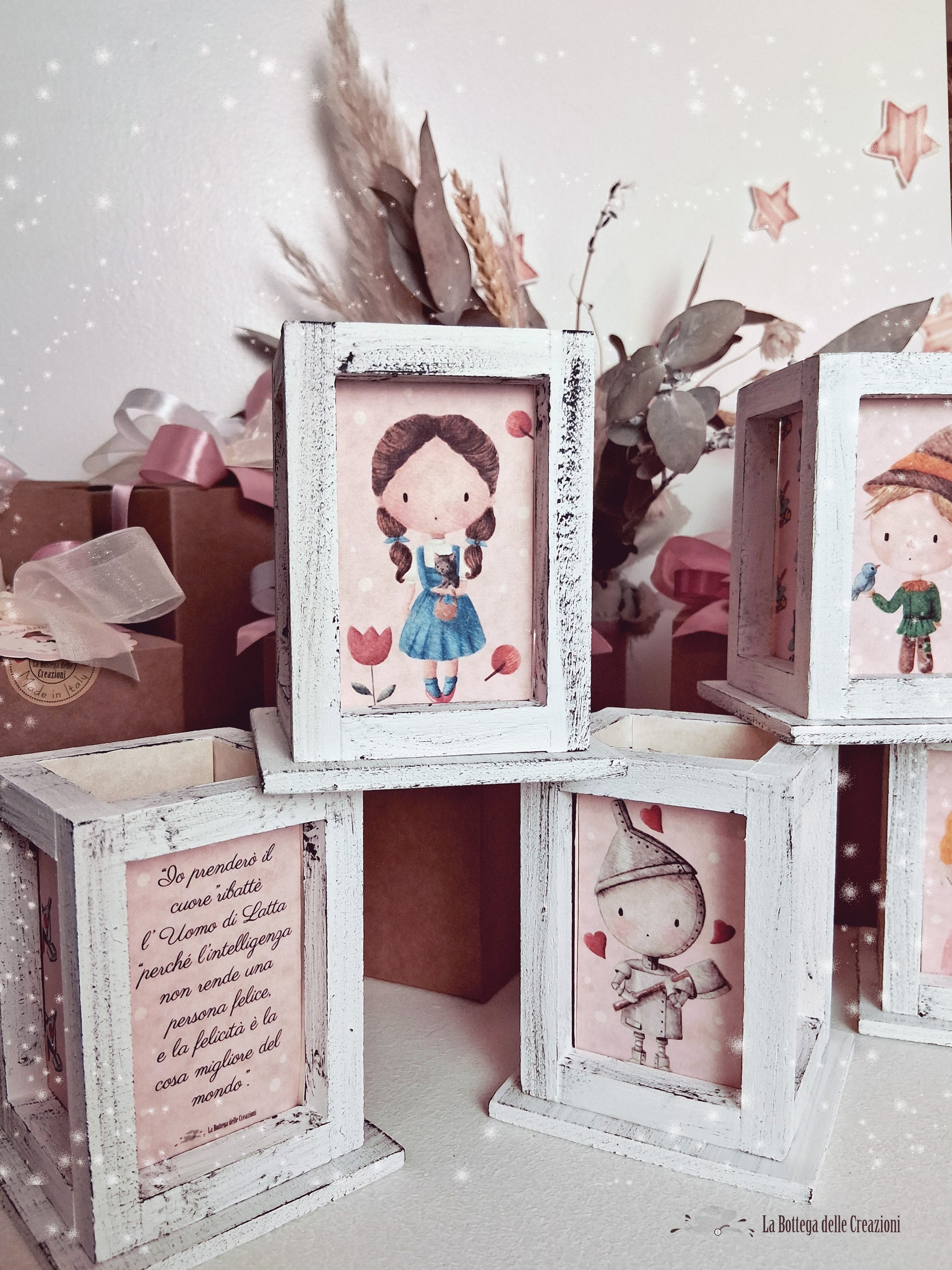Ogni lanterna è decorata con illustrazioni ispirate al mondo del Mago di Oz e realizzata con cura nel nostro laboratorio artigianale.