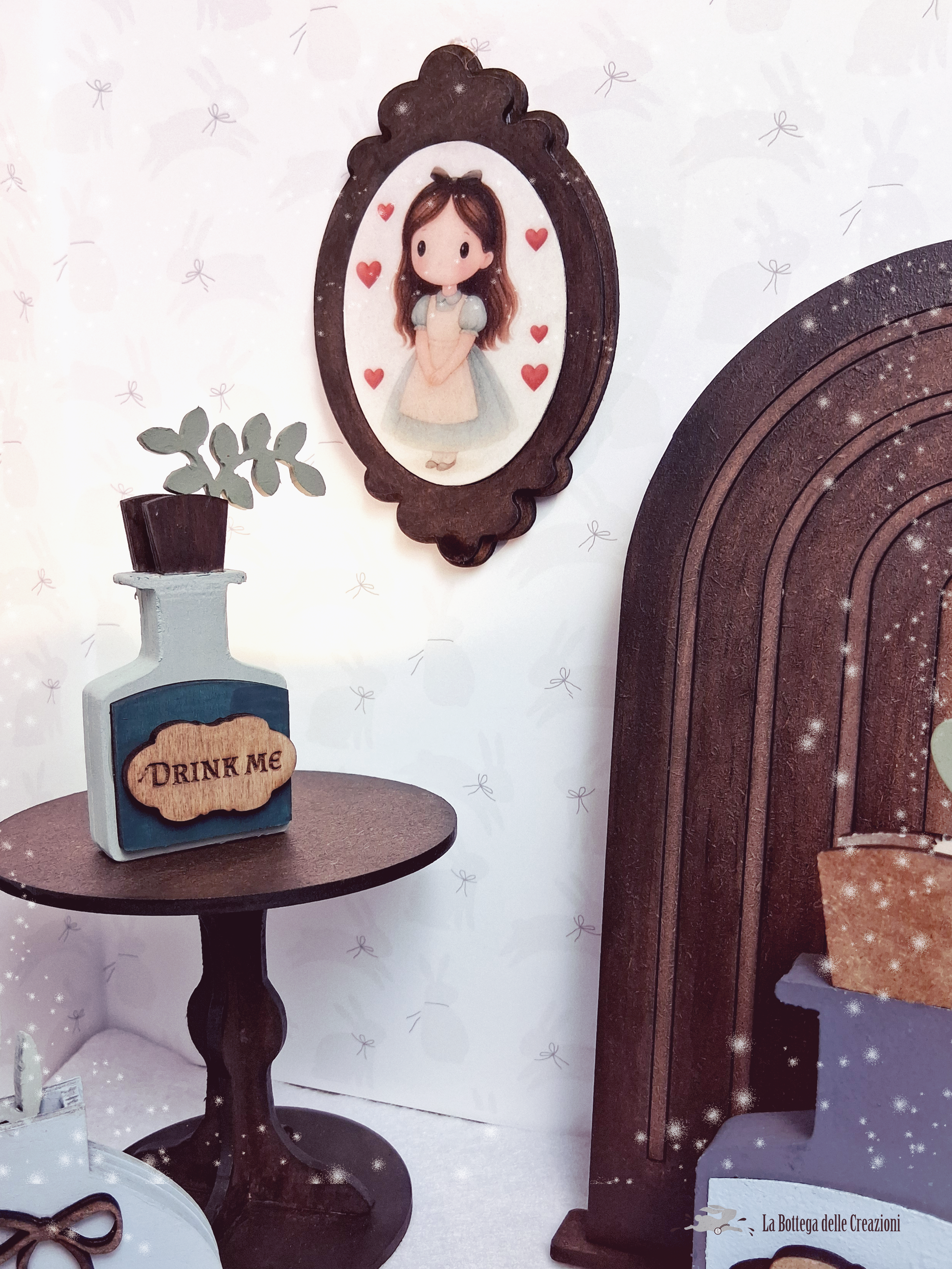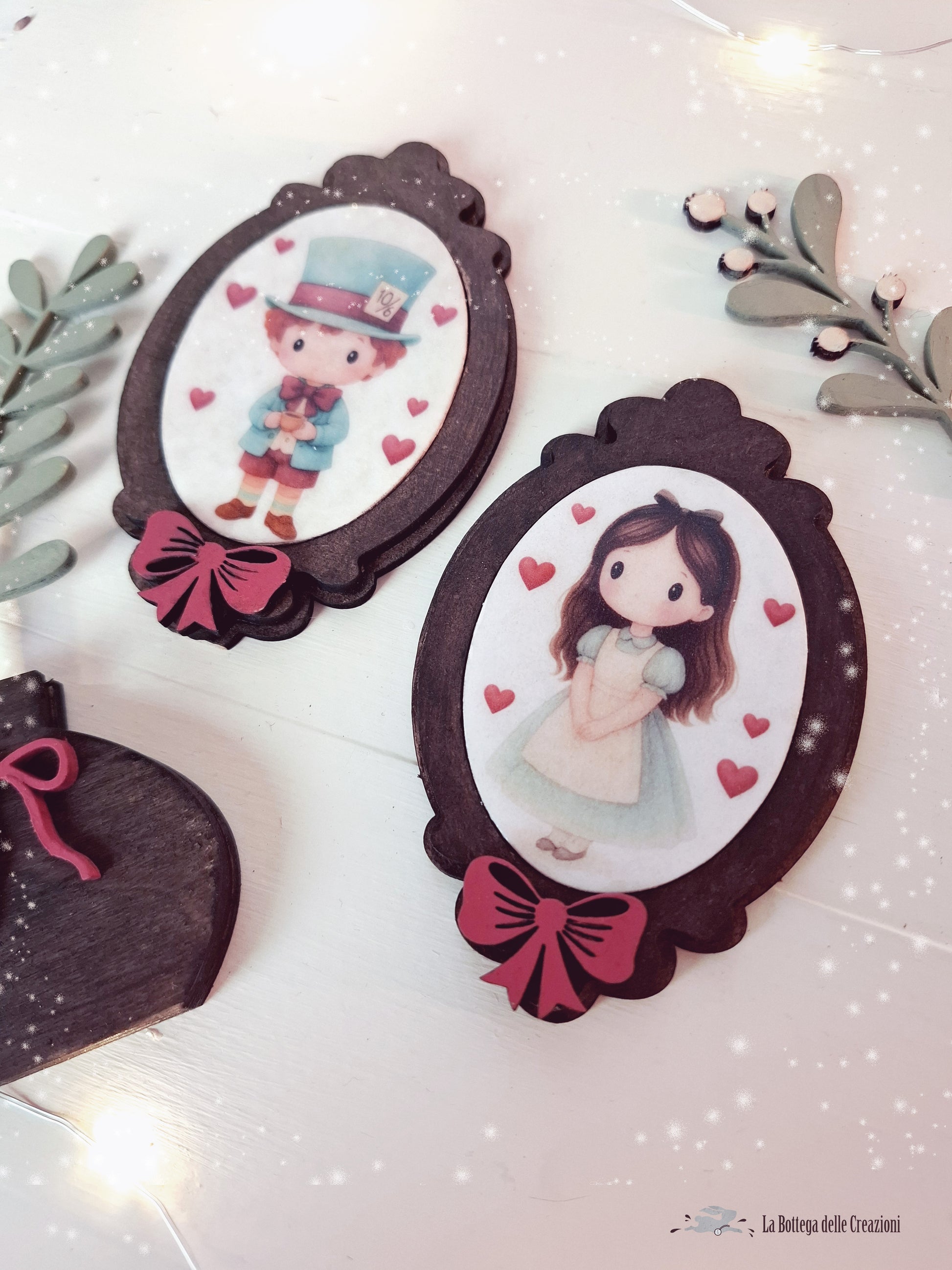 CALAMITE cornicette in legno e resina Alice nel Paese delle Meraviglie, disegni di nostra creazioni